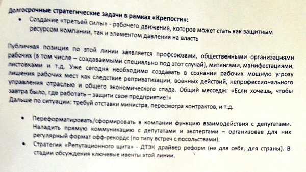 В этом документе, в частности, прописаны уже проходящие акции протеста шахтеров в Киеве.