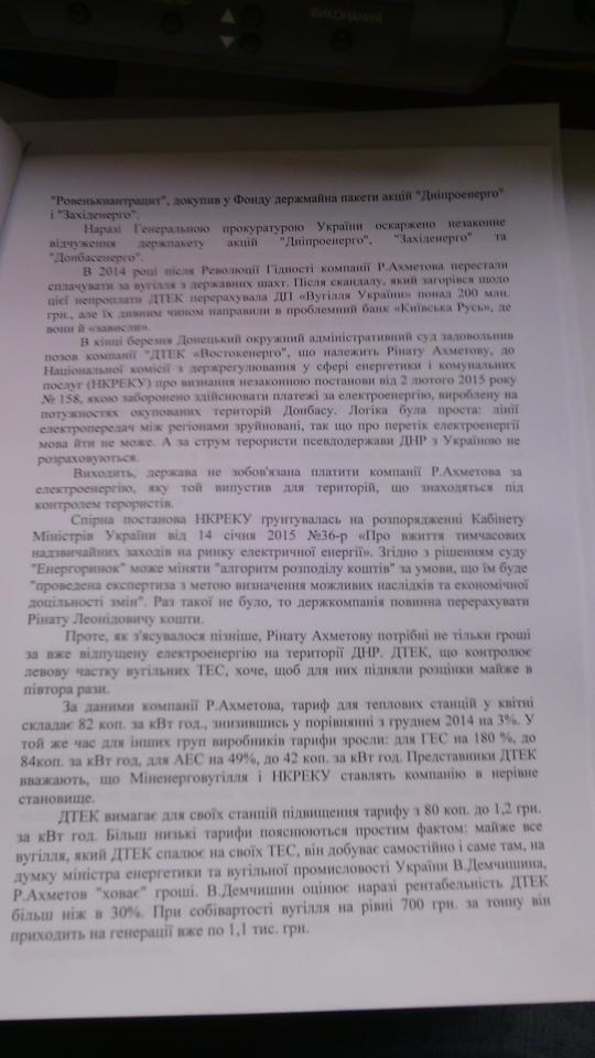 Как сообщал Капитал, сегодня народный депутат из фракции «Блок Петра Порошенко» Мустафа Найем написал в своем блоге, что директора компании ДТЭК, которая входит в холдинг СКМ Рината Ахметова, разработали план на ближайшие месяцы, одна из целей которого — сдетонировать социальный взрыв в Украине.