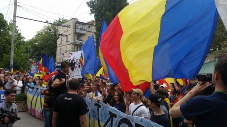Активисты выступали за вступление Молдовы в Евросоюз путем объединения с Румынией.
