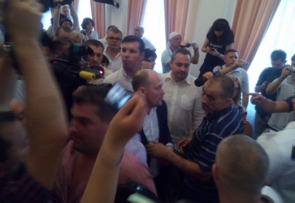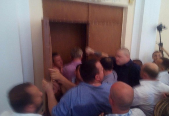 Мэр вызвал милицию, но правоохранители в ход событий вмешаться не смогли, поскольку сессионный зал был забаррикадирован.
