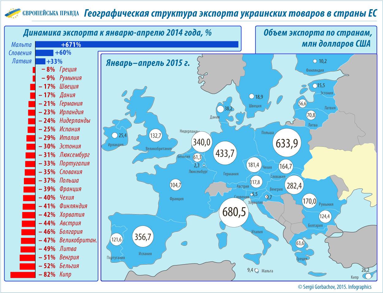 Пока положительные показатели украинского экспорта наблюдаются только в трех странах: на Мальте, в Словении и Латвии, однако этот пример не является показательным.