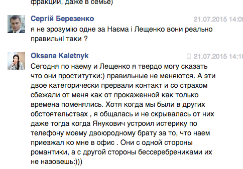 Фрагменты переписки размещены на странице организации в Facebook, и эту информацию уже прокомментировали некоторые народные депутаты.