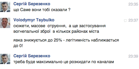 Представители «киберсопротивления» «Націократія» взломали страничку кандидата в народные депутаты по избирательному округу № 205 в Чернигове Сергея Березенко. Из нее стало известно, что команда этого кандидата, которого лично поддерживает президент Украины Петр Порошенко, готовит провокации против конкурента — Геннадия Корбана — ближайшего соратника бизнесмена Игоря Коломойского.
