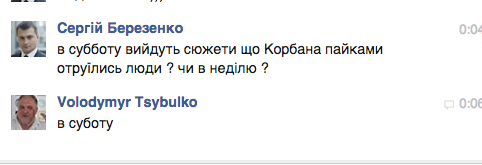 Также из переписки понятно, что на субботу планируется выход телевизионных сюжетов о том, что в городе произошли массовые отравления людей продуктами, которые якобы раздаются от кандидата Корбана, а также не исключено, что произойдут провокации в разных районах города, судя по переписке, ответственным за это является политолог Владимир Цыбулько.