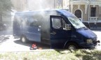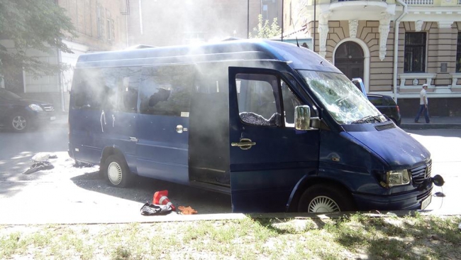 Кроме фасада приемной, они также повредили припаркованный около здания микроавтобус.