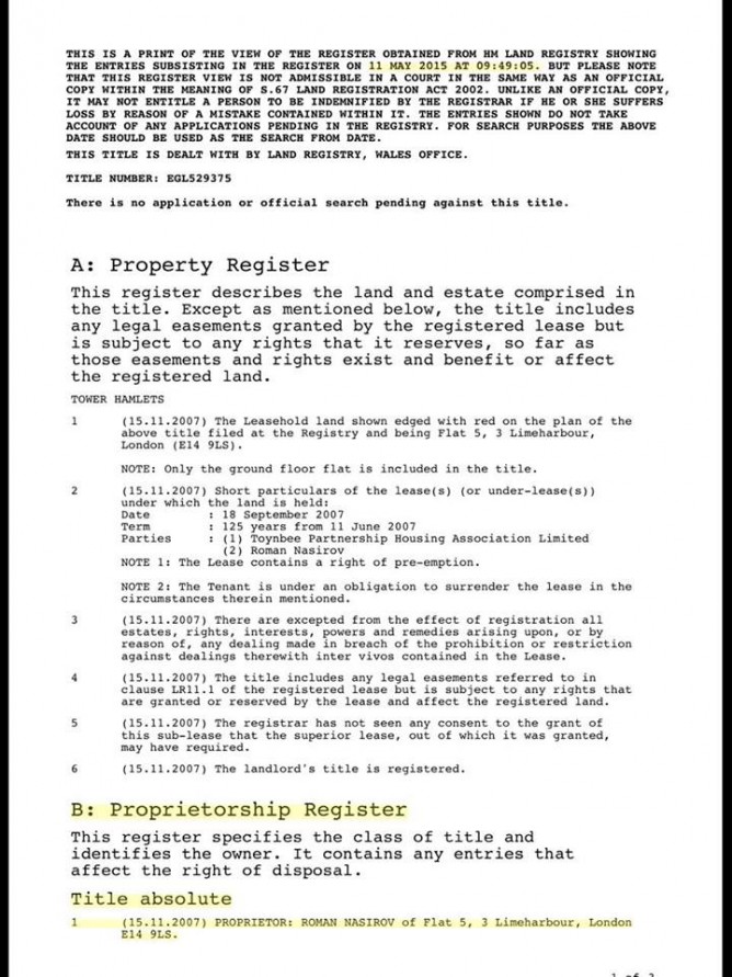 «Меня сейчас часто спрашивают, собираюсь ли я подавать на Насирова иск в суд о защите чести и достоинства за безосновательные обвинения в коррупции. Отвечу — я думаю об этом и, возможно, подам такой иск по месту жительства Насирова в Лондоне (квартира 5, 3 Лаймхарбор [Flat 5, 3 Limeharbour], Лондон, Е14 9LS).