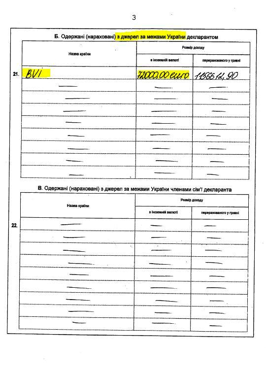 При этом в декларации Пиковского в разделе о доходах, полученных из-за границы, указан доход с Виргинских островов в размере 72 тыс. евро (или 1,16 млн грн). Однако никакие взносы в уставные капиталы иностранных компаний в его декларации не указаны.