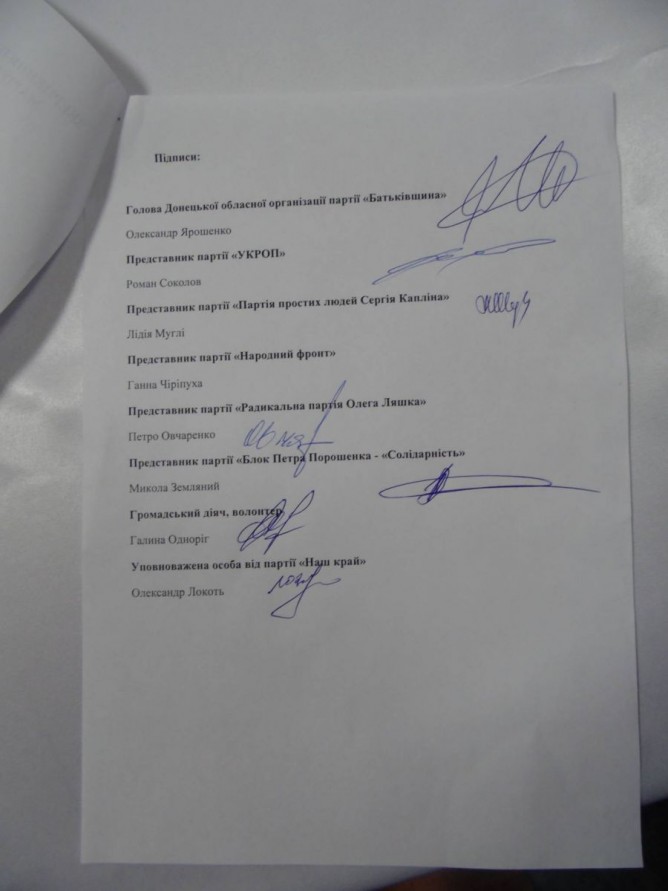 Стоит отметить, инициативу поддержали следующие партии: «Батькивщина», УКРОП, Партия простых людей, «Народный фронт», Радикальная партия, «Блок Петра Порошенко «Солидарность», «Наш край» и волонтер Галина Однориг.