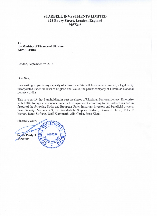 Сейчас новый директор УНЛ Андрей Бочковский заявляет, что ни старые, ни новые собственники УНЛ никогда не имели каких-либо связей с Питером Шетти. Инвесторы, тем временем, показывают письма самого Бочковского и Сергея Пиндыча, адресованные Министерству финансов Украины, в которых они подтверждают, что Питер Шетти является конечным выгодоприобретателем компании, а также выдержки из Госреестра, подтверждаюющие это. Кроме того, чуть более года назад УНЛ публично презентовал своих европейских бенефициаров в рамках конференции 29.09.2014.