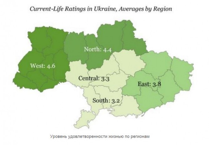 Наиболее удовлетворены своей жизнью — жители Западной Украины, самые худшие показатели — на Юге и Востоке страны.