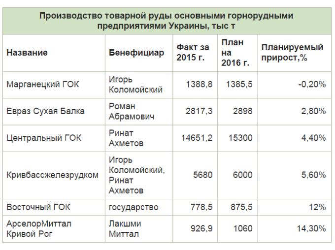 Самые большие рудные компании, принадлежащие Игорю Коломойскому, Ринату Ахметову и Роману Абрамовичу планируют увеличить добычу руды в 2016 году.