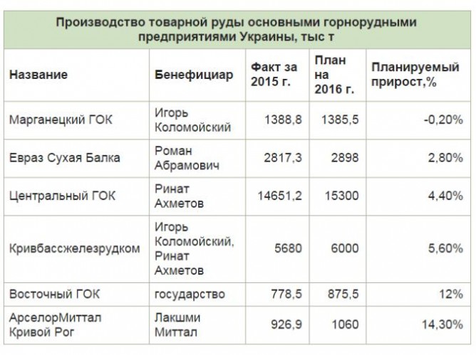 «Кривбассжелезрудком», принадлежащий Игорю Коломойскому и Ринату Ахметову планирует увеличить добычу на 5,6%: с 5680 тысяч тонн до 6000 тысяч тонн.