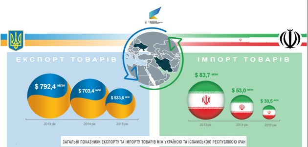 При этом, в публикации говорится, что двусторонний товарооборот между Тегераном и Киевом в 2015 году существенно сократился.