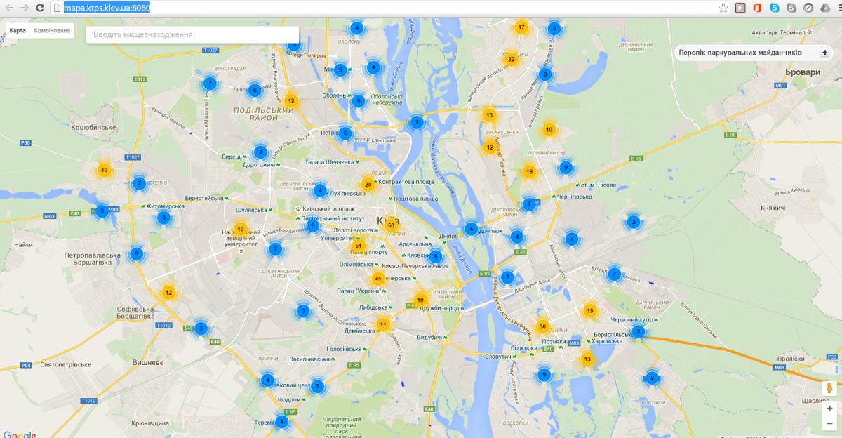 Департамент транспортной инфраструктуры Киевской городской госадминистрации и КП «Киевтранспарксервис» создали интерактивную карту парковочных площадок Киева.
