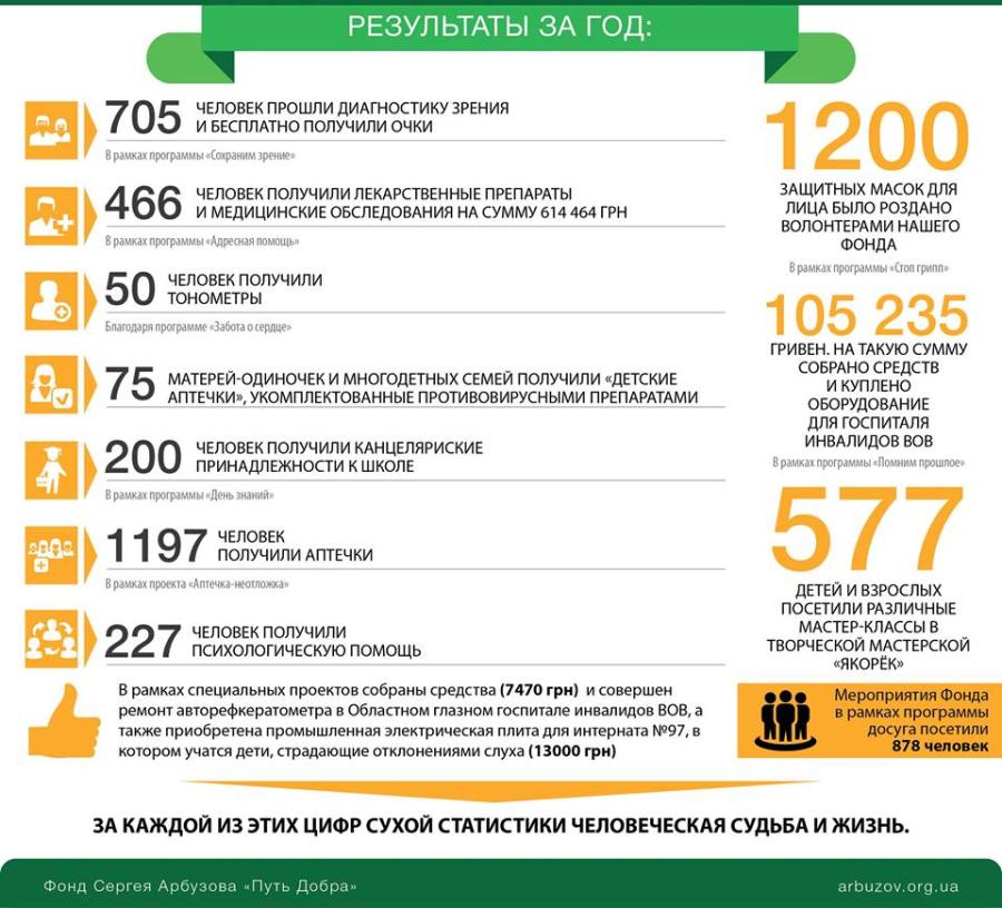 • Благодаря программе «Помним прошлое», были собраны средства и куплено оборудование для одесского областного госпиталя инвалидов ВОВ на сумму — 105 235 грн.