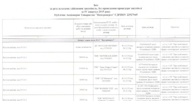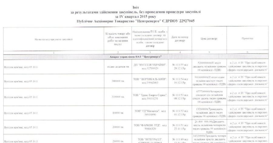 «Центрэнерго» в соответствии с законом о госзакупках в 2014 году был освобожден от необходимости проводить тендеры на приобретение угля, которое служит сырьем для выработки электроэнергии. Хотя во времена Виктора Януковича заключения угольных контрактов происходило на основании тендерных процедур.