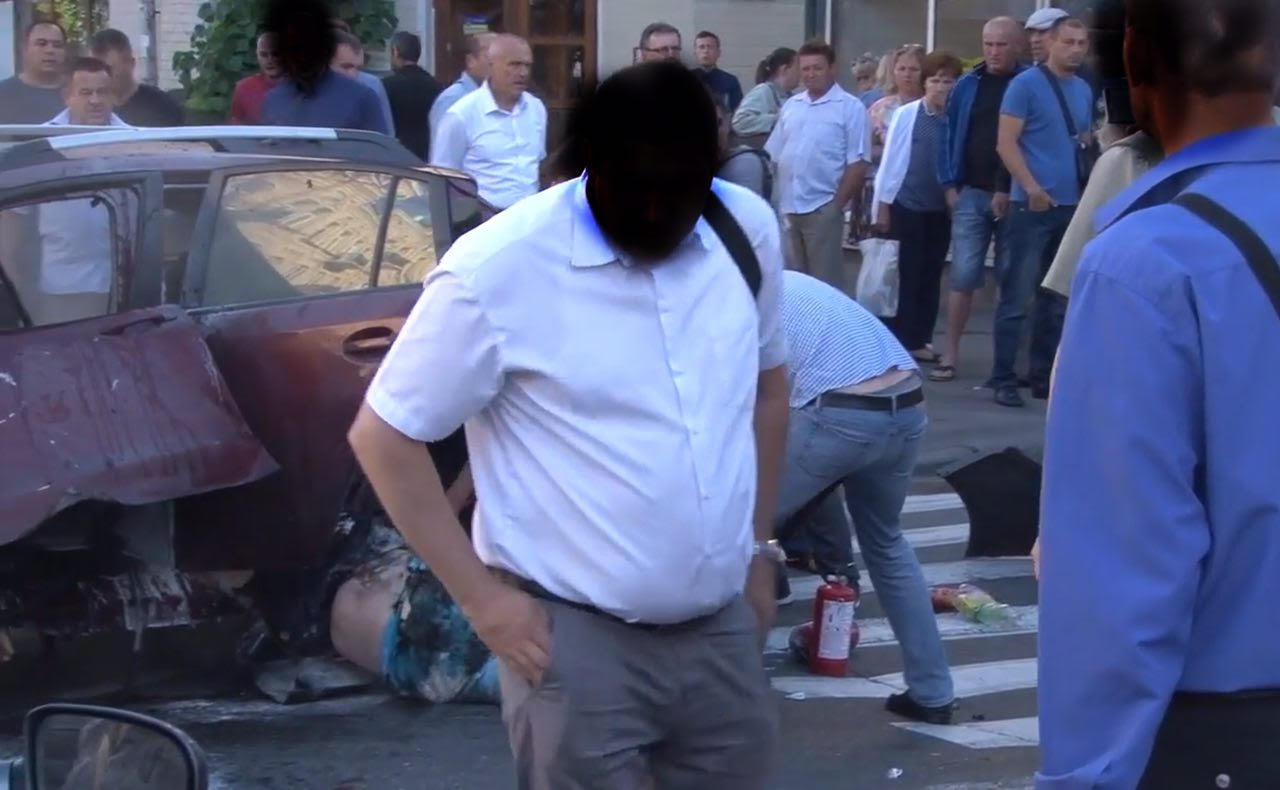На кадрах, опубликованных в интернете с места взрыва автомобиля, в котором находился журналист Павел Шеремет, также видны два сотрудника Трояна, которые были там в момент взрыва, один из них бывший боец "Азова", а ныне сотрудник Нацполиции.