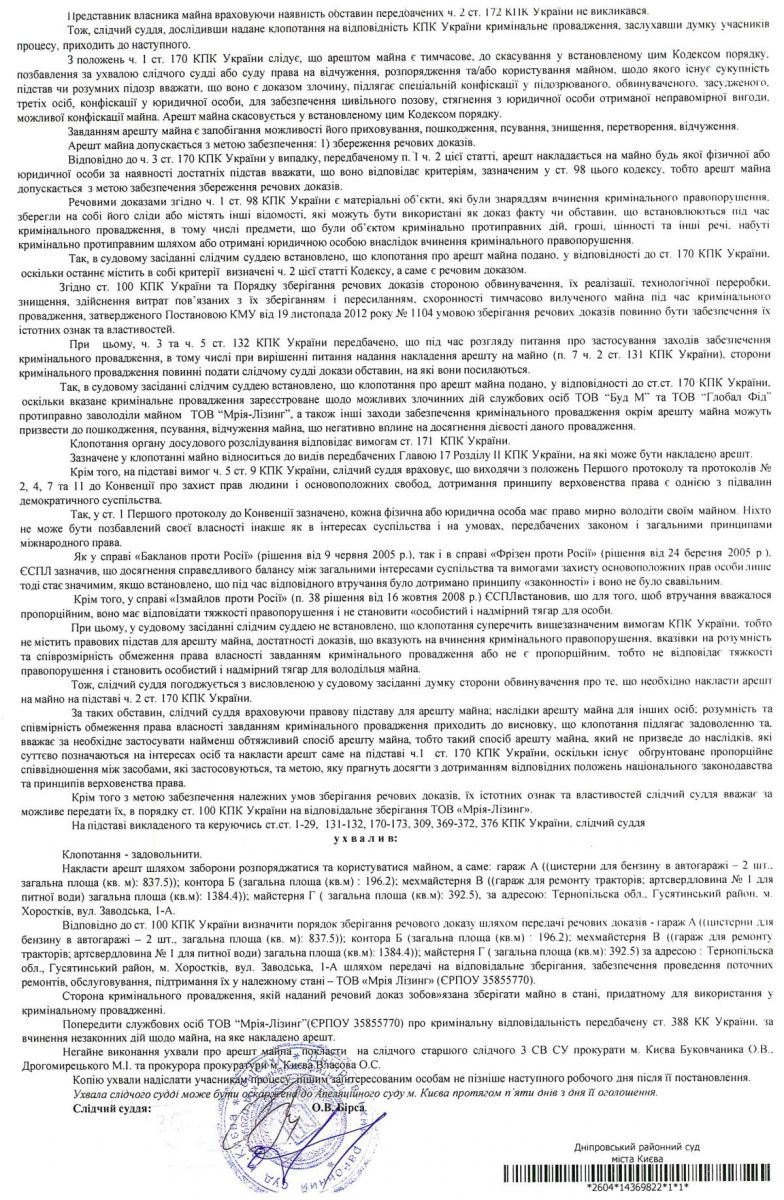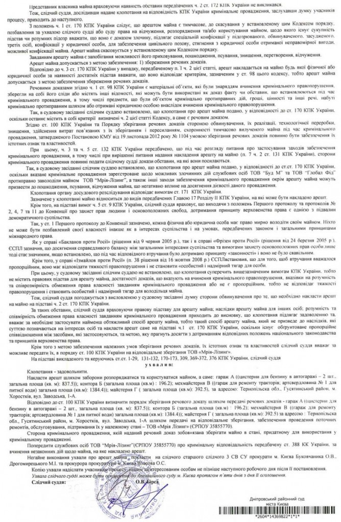 Отметим, что в период с 29 июня 2011 г. по 7 августа 2014 г. собственником зданий и сооружений АТП в г. Хоростков являлось ООО «Мрия-Лизинг».