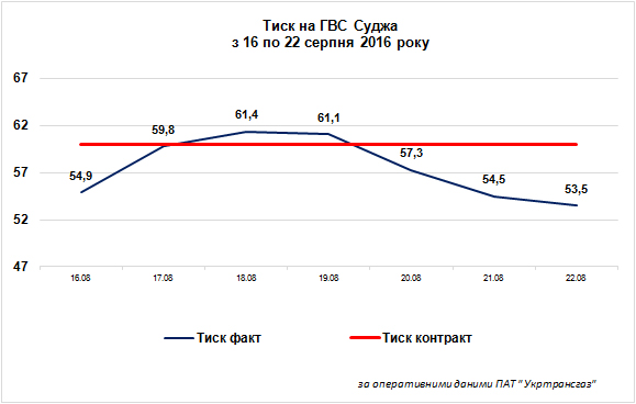 Так, давление в российской ГТС на газоизмерительной станции Суджа — ключевом пункте входа в украинскую ГТС, составил 53,5 атм при минимально допустимом значении 60,0 атм.