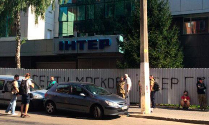 Как сообщалось, утром 5 сентября здание телеканала Интер на ул. Дмитриевской в Киеве после поджога, произошедшего накануне под офисом компании «Национальные информационные системы», обнесено металлическим забором. Возле здания находились несколько десятков активистов, некоторые из них — в камуфляжной форме. Кроме того, здесь находится несколько автомобилей ГСЧС, правоохранителей и машины «скорой помощи». На заборе краской написаны фразы «Пособники Кремля», «Интер — геть!». Позже к зданию телеканала были подвезены шины, активисты заградили ими выезд из здания.