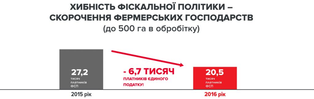 «В 2015 году в Украине было 27 000 фермерских хозяйств, в то время как уже в 2016 году их стало только 20 500. Это минус 6000 ферм! Или это случайно? Нет! Это цель людей, которые сегодня держат в руках власть. Они считают, что сельскохозяйственная земля — не ваша, и не планируют вам ее оставлять », - подчеркнула глава партии.