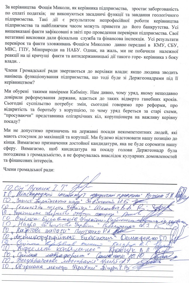 Обнародованные результаты открытого конкурса в Госгеонадрах вызвали недовольство участников рынка и активистов к Николаю Фощию, которому вменяют работу с Эдуардом Ставицким, коррупцию и доведение до банкротства государственного предприятия.