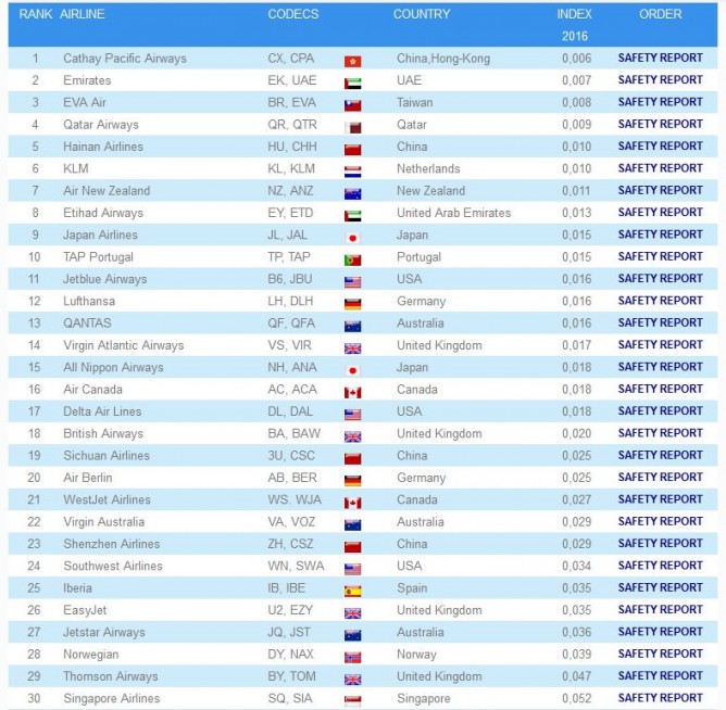 Самая безопасная европейская авиакомпания — это KLM (Нидерланды). Она на шестом месте.