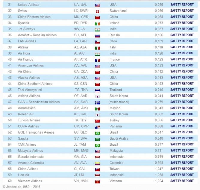 Об этом сообщает Капитал со ссылкой на данные центра авиабезопасности JACDEC (Jet Airliner Crash Data Evaluation Centre) в ежегодном рейтинге.