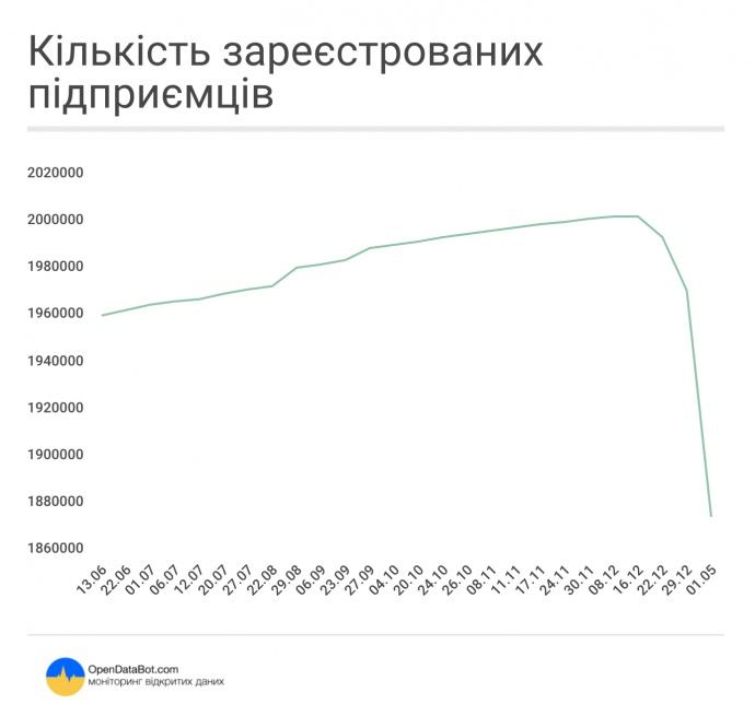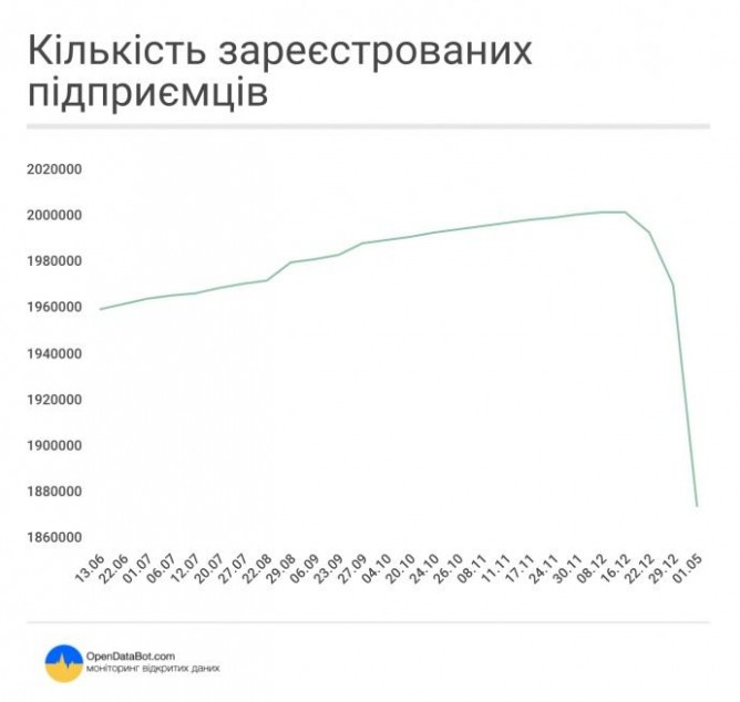 В Украине общее количество частных предпринимателей уменьшилось на 128,402 тысяч, свидетельствуют данные сервиса мониторинга регистрационных данных украинских компаний OpenDataBot.