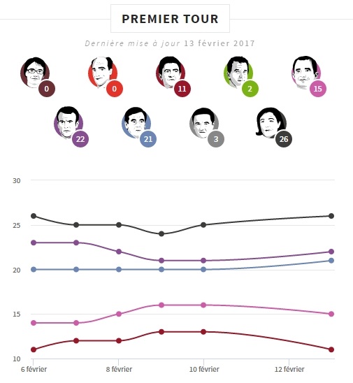 В первую тройку лидеров по-прежнему входят 39-летний бывший министр экономики Эманюэль Макрон и кандидат от республиканцев Франсуа Фийон. Причем Фийону, рейтинг которого несколько «просел» на фоне скандала «Пенелопагейт», удалось значительно сократить разрыв. Так, в первом туре выборов в поддержку Макрона готовы проголосовать 22% избирателей, за Фийона — 21% французов.