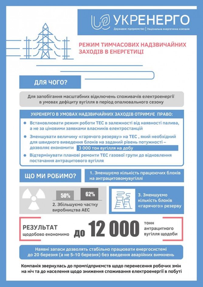 Имеющиеся запасы угля на складах ТЭС и ТЭЦ Украины позволят стабильно работать энергосистеме до 20 марта без введения аварийных отключений, сообщили в пресс-службе «Укрэнерго».