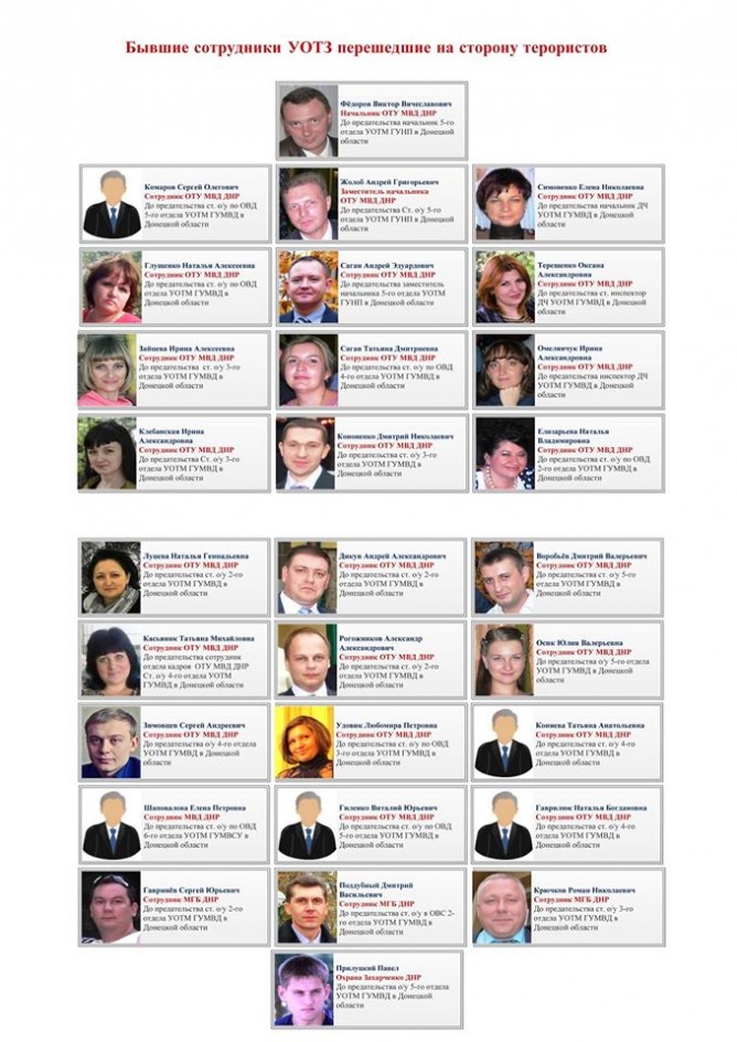 Начальник Главного управления Нацполиции в Донецкой области Вячеслав Аброськин опубликовал на своей странице в Facebook список сотрудников управления оперативно-технических мероприятий МВД Украины, перешедших на сторону террористов.