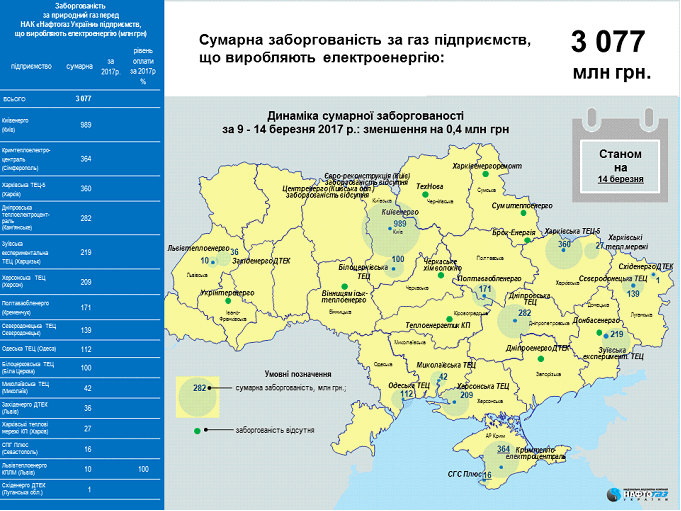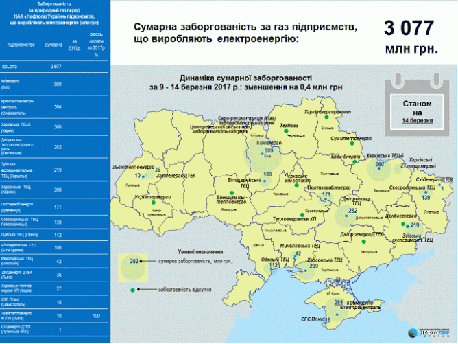 Задолженность предприятий ТКЭ, ТЭЦ и прямых промышленных потребителей перед НАК «Нафтогаз Украины» за неделю увеличилась на 17,6%, или на 4,953 млн гривен и составила 33,2 млрд гривен, пишет пресс-служба НАК.