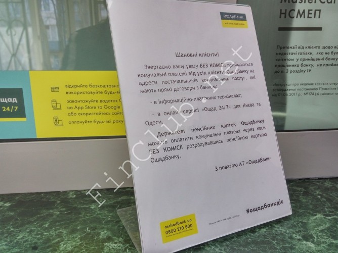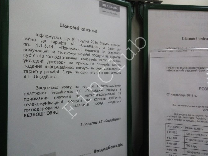 Фото объявления в Ощадбанке в ноябре 2016 года: