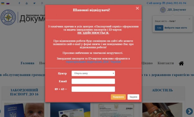 В тот же день (6 апреля) сервисы по оформлению документов прекратили работу, отчасти из-за ажиотажа на биометрические паспорта, который нужны будут для безвизового въезда в ЕС, а также из-за следственных действий, проводимых силовиками. В ГП «Документ» заявили, что паспортные центры не работали из-за изъятия СБУ серверов в телекоммуникационных компаниях.