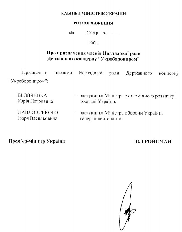 Кабмин предлагает назначить членами набсовета заместителя министра экономики — Юрия Бровченко и заместителя министра обороны Игоря Павловского.