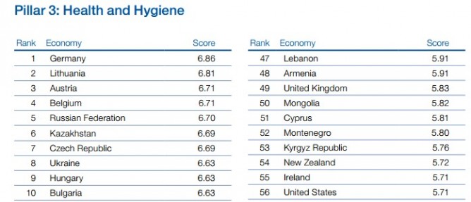 С другой стороны, эксперты отметили высокий уровень украинского здравоохранения и санитарных стандартов, где страна попала в первую десятку стран-лидеров.