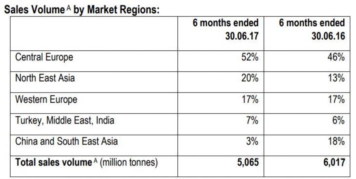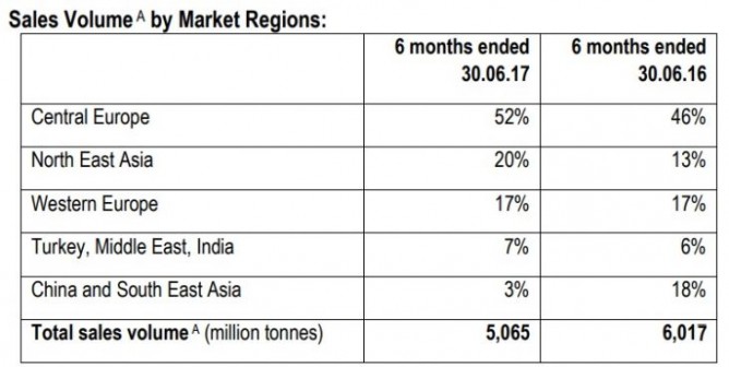 Согласно финансовому отчету Ferrexpo, за полгода ее доля продаж на рынке Китая и стран Юго-Восточной Азии снизилась до 3% с 18%, тогда как доля отгрузок в страны Центральной и Восточной Европы увеличилась до 52% с 46%