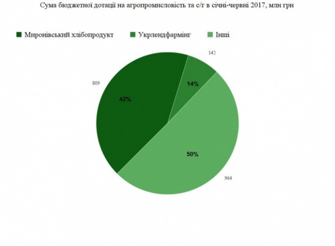 Наибольшую долю всех дотаций на общую сумму 809 млн грн получила группа компаний Мироновский хлебопродукт (ЧАО «Мироновская птицефабрика», СООО «Старинская птицефабрика», ЧАО «Орель-Лидер» и ГП «Победа новая»).