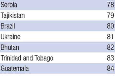 По сравнению с прошлым годом Украина поднялась на четыре позиции, говорится в обнародованном во вторник документе. Ближайшие соседи Украины — Бразилия и Бутан.