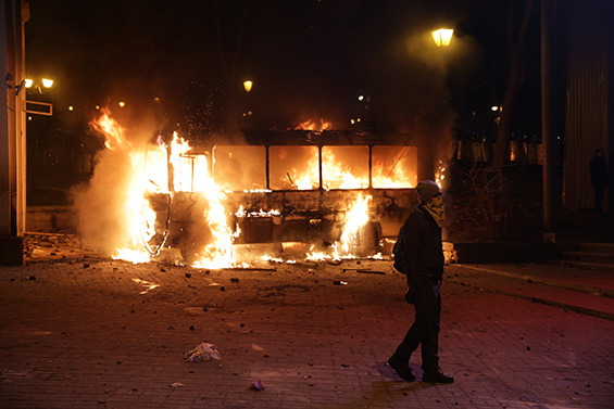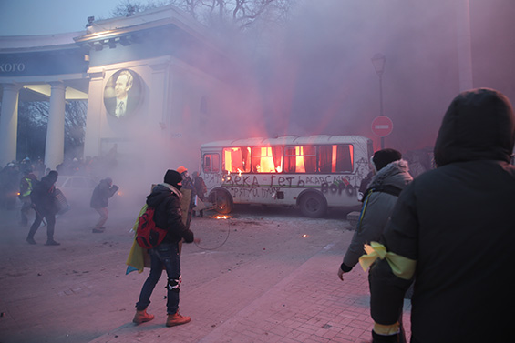В Киеве акция оппозиции переросла в массовые беспорядки и стычки с милицией. В ход пошли пиротехнические средства, коктейли Молотова и водометы.