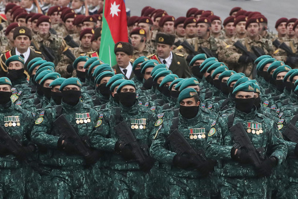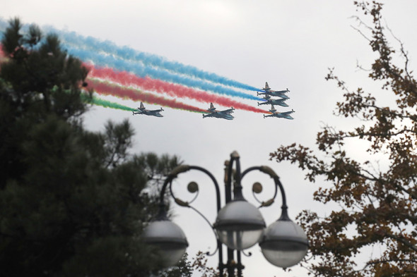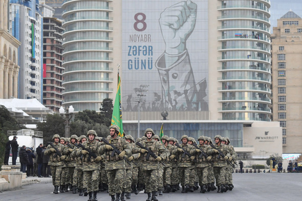 Военный парад, посвященный завершению военных действий в Карабахе, прошел в четверг на площади «Азадлыг» («Свобода») в Баку.