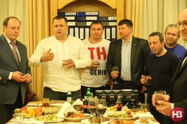 Мероприятие состоялось после официальной церемонии увольнения, ближе к полуночи. Проводив президента Петра Порошенко в аэропорт, Коломойский вернулся в ОГА. На 7-м этаже, в кабинете Корбана собралась его команда на последний банкет в этом здании.