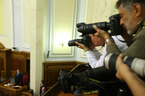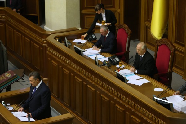 В торжественной церемонии приняли участие члены Кабмина и президент Виктор Янукович, который выступил перед депутатами с посланием.