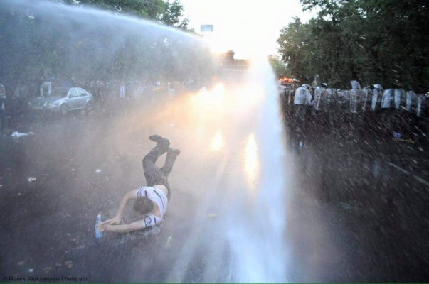 Однако полицейские с помощью водометов оттеснили участников акции с проспекта Баграмяна в сторону площади Свободы. Десятки человек задержаны.