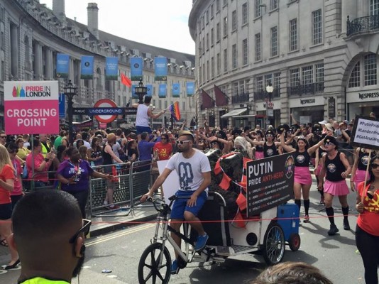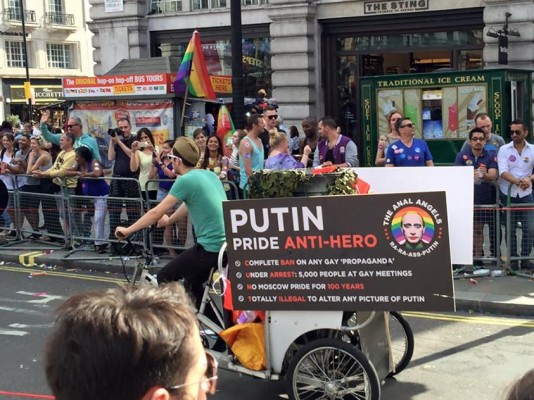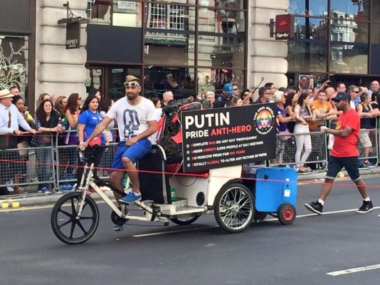 Представители российского ЛГБТ-сообщества приняли участие в гей-параде в Лондоне, а центральным персонажем действа стал президент России Владимир Путин.