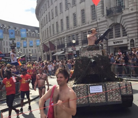 «Центральной фигурой парада был Владимир Владимирович Путин. Вернее его клон, его маска. С загорелым полуобнаженным торсом, в армейских штанах цвета хаки он сидел на танке и стрелял в присутствующих из надувного автомата. Танк рычал и ехал, как танк. Мощные динамики разносили на всю площадь Пикадилли современную обработку произведения „Распутин“ ... Толпа визжал от восторга ... Вот такая она гейропа...», — написал Лушников.