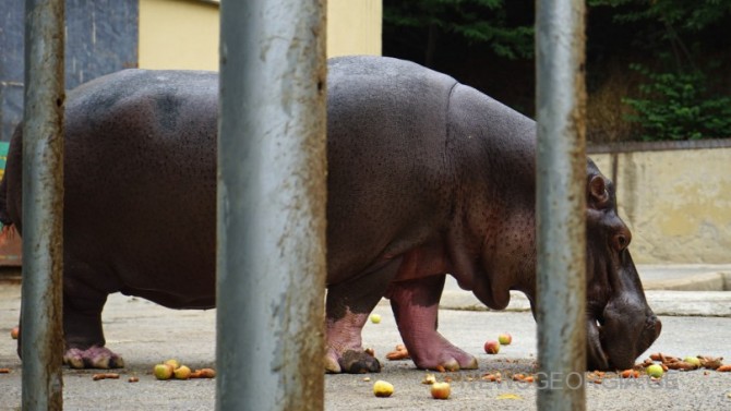 О том, что это особый день, свидетельствовали только фотовыставка у входа со снимками погибших животных и кружки с изображениями бегемота, который получил мировую известность после настоящей спасательной операции на площади Героев в Тбилиси.