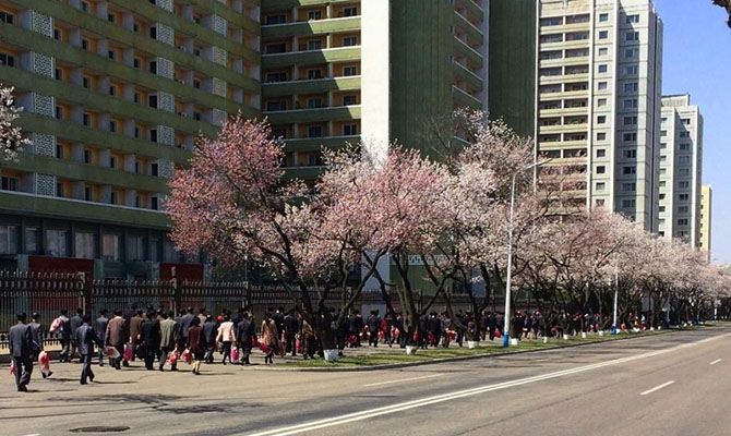 Перспектива ядерной войны на полуострове явно не нравится соседям. Видимо, как своеобразный жест один из китайских ресурсов опубликовал целую подборку фотографий, на которой изображена повседневная жизнь в Северной Корее. Все люди, попавшие в кадр, могут уже совсем скоро превратиться в пепел, если политики не договорятся.