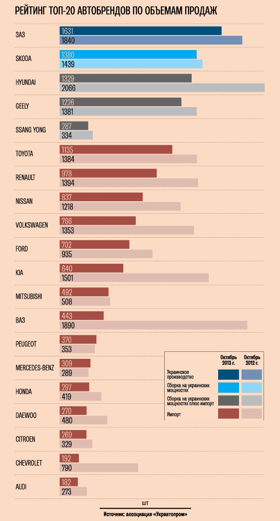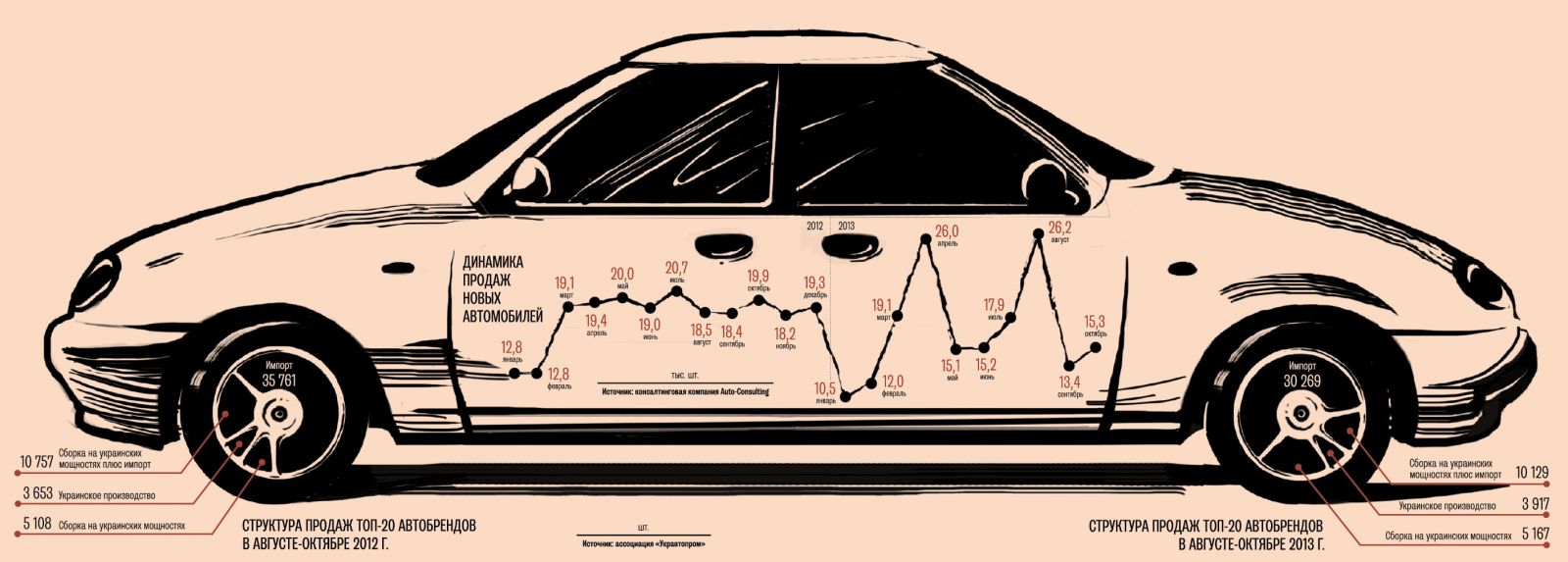 Кроме того, начал сокращаться разрыв в объемах производства 2012 и 2013 г. По данным «Укравтопрома», если в первом квартале нынешнего года объемы производства отставали от аналогичного периода 2012 г. на 63 %, то во втором — разрыв сократился до 45 %, а в третьем — до 27 %.